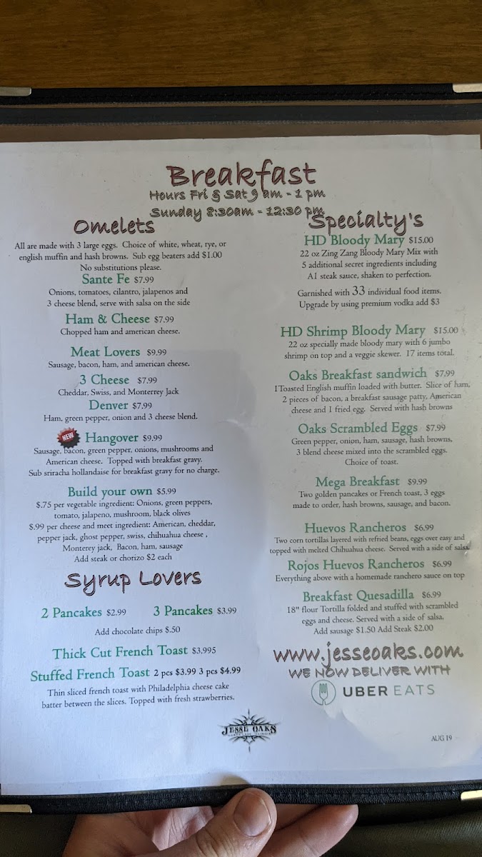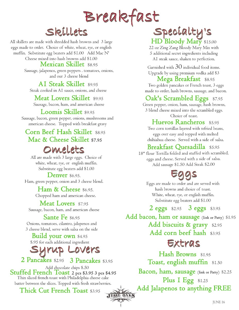 At Jesse Oaks, the warmth of the staff is only matched by the quality of the food. Diners can enjoy an extensive selection of soups and salads, expertly crafted to satisfy any craving. The Chef Salad delights with its fresh ingredients for just US$11.99, while the Taco Salad brings a burst of flavor at US$9.99. For something heartier, don’t miss the Chicken Ceasar Salad or the comforting Tortilla Soup, each offering something special to the palate. Prices are incredibly reasonable, ensuring that you won’t break the bank while enjoying a fantastic meal.